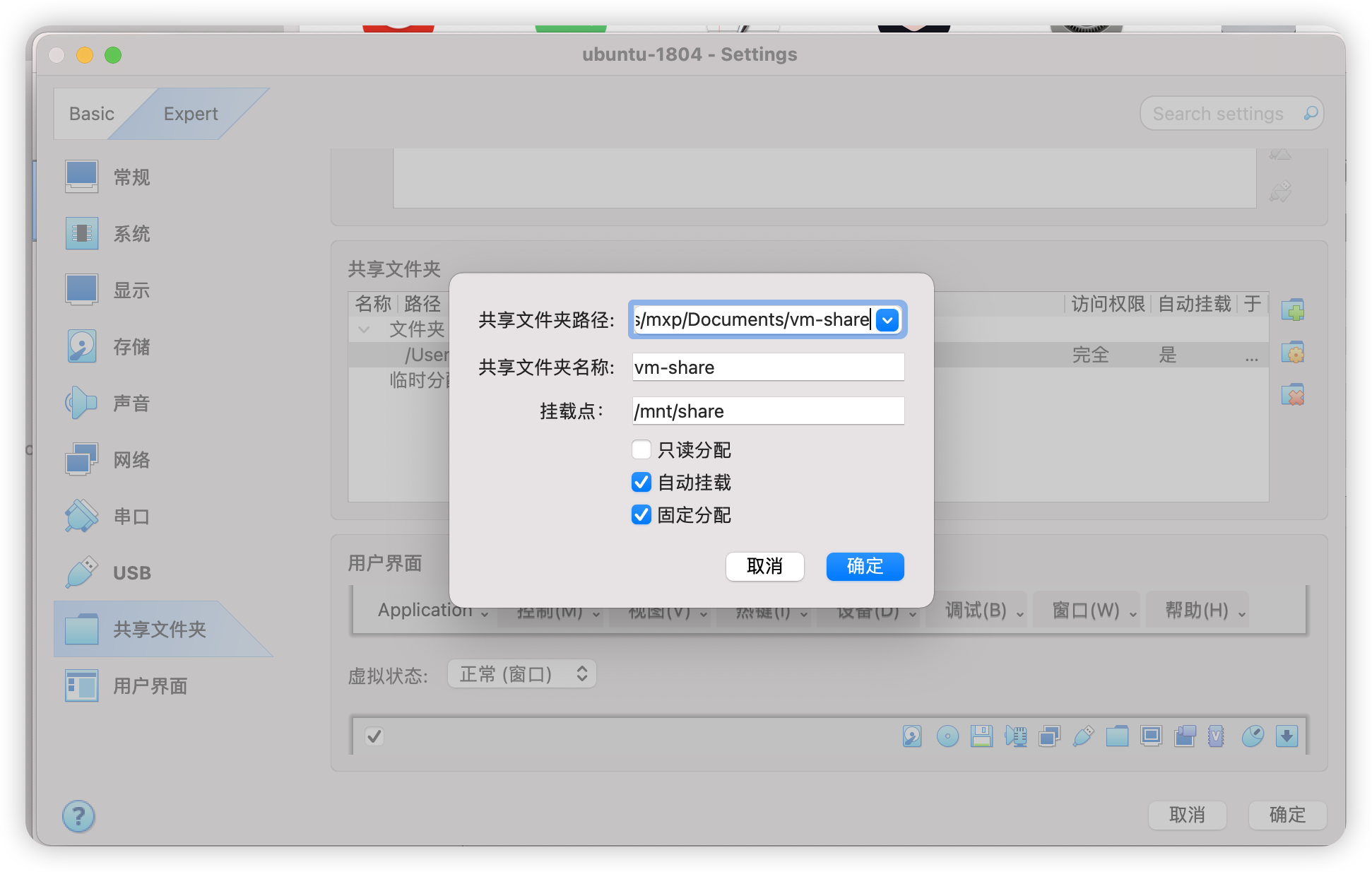 在ubuntu1804虚拟机里新建需要共享的文件夹mkdir -p /mnt/share