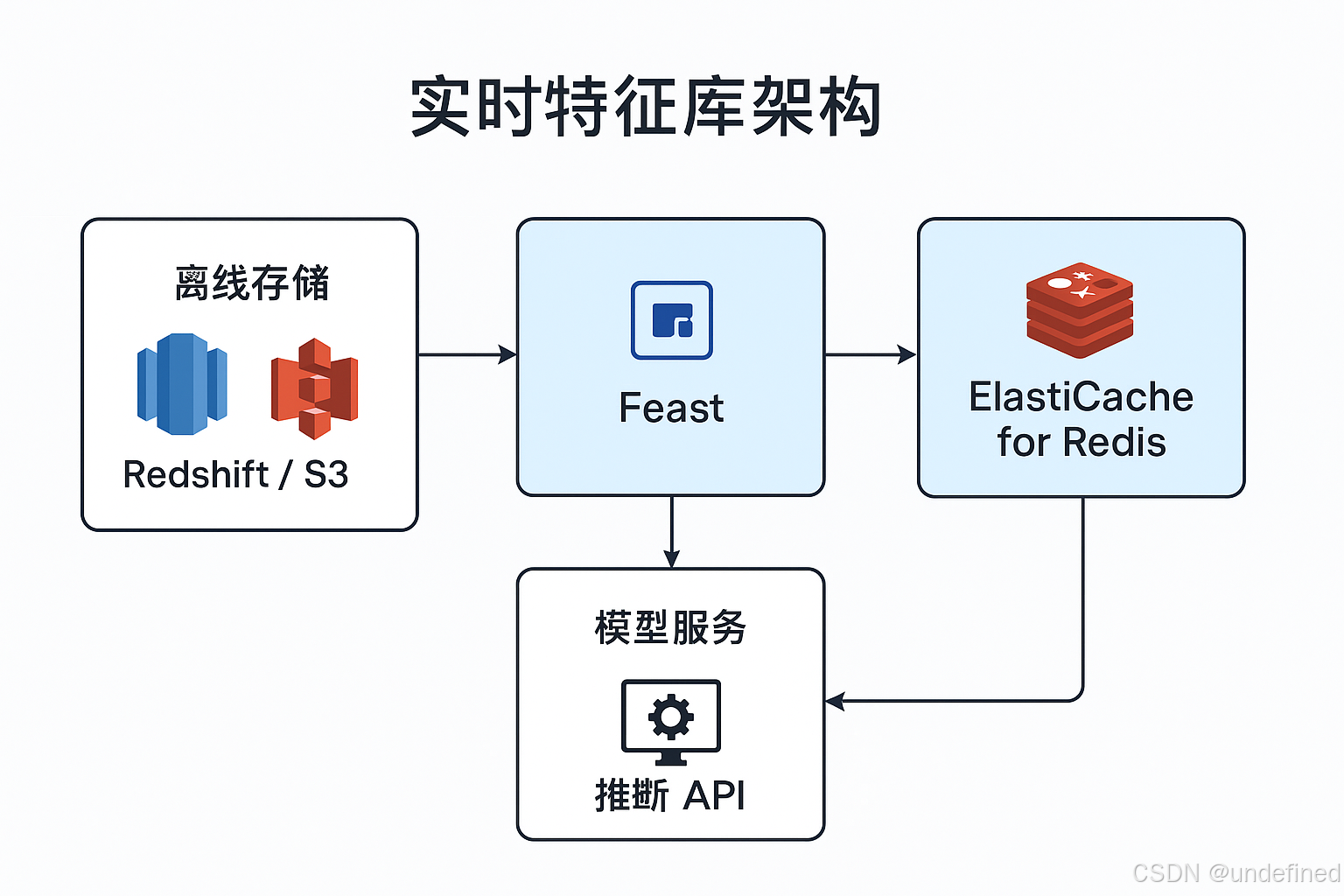 - 存储分层:Redis 放热数据、实时特征;Redshift / S3 放冷数据、历史特征。