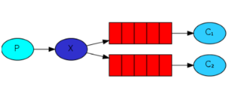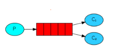 以工作队列模式为例,如图生产者p 产生消息 ,并插入到队列中 ,消费者c1 和 消费者 c2 拿到队列中的消息 并加以处理