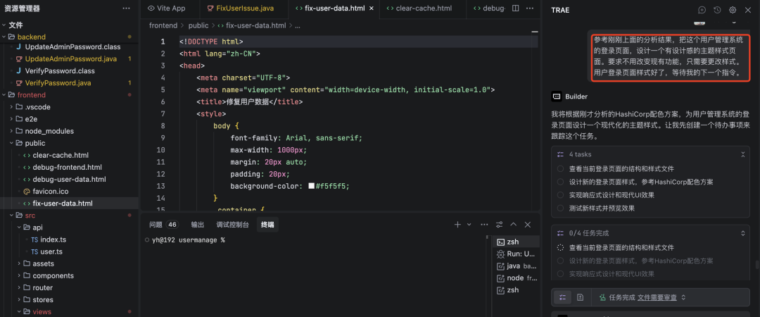 AI 编程 Trae 如何去 AI 味(以用户管理系统为例子)