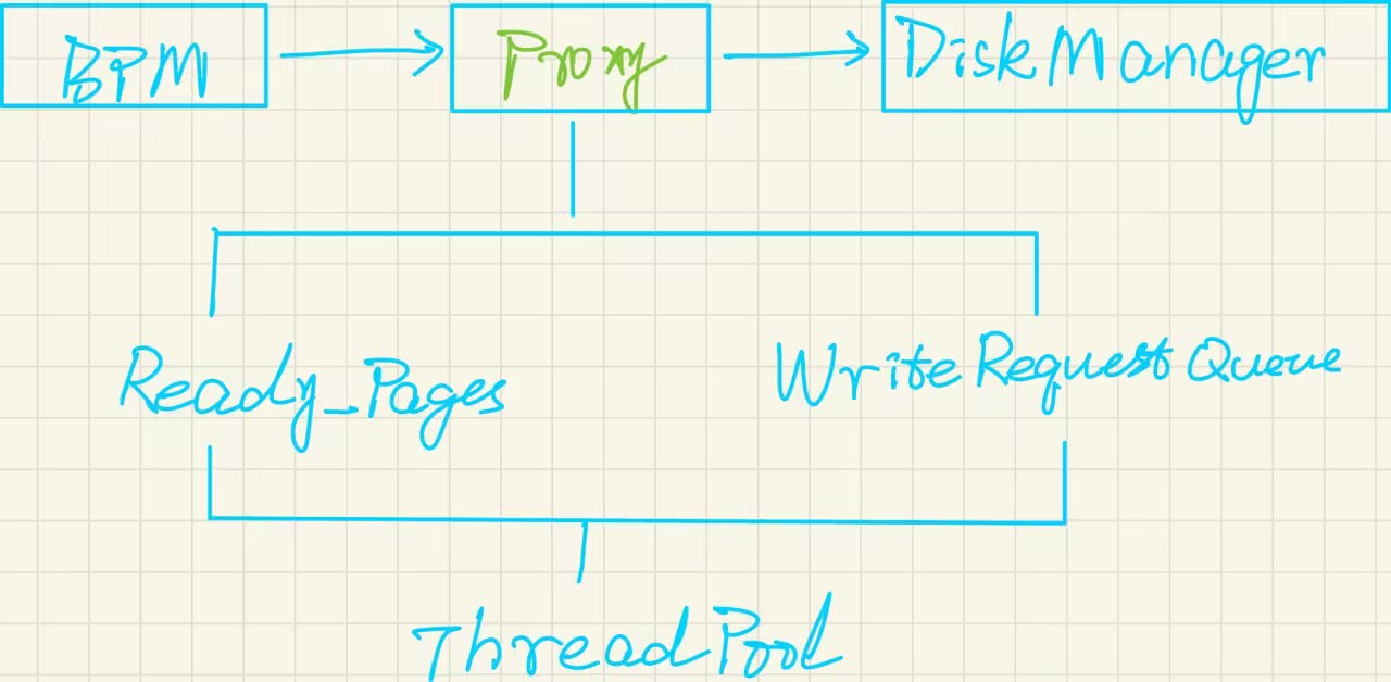 auto CreatePromise() -> DiskSchedulerPromise { return {}; };void DiskScheduler::Schedule(DiskRequest r) { request_queue_.Put(std::move(r)); }void DiskScheduler::StartWorkerThread() {std::optional<DiskRequest> request;while ((request = request_queue_.Get())) {if (request) {if (request->is_write_) {disk_manager_->WritePage(request->page_id_, request->data_);request->callback_.set_value(true);continue;}disk_manager_->ReadPage(request->page_id_, request->data_);request->callback_.set_value(true);}}