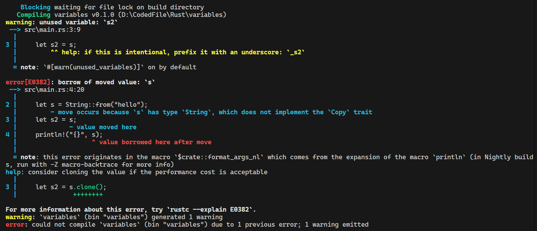 fn main() {let s = String::from("hello");let s2 = s;println!("{}", s);