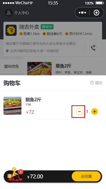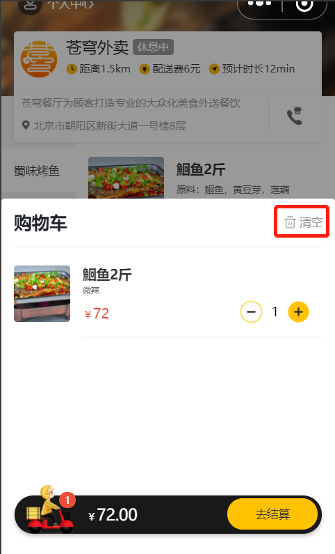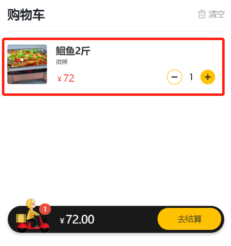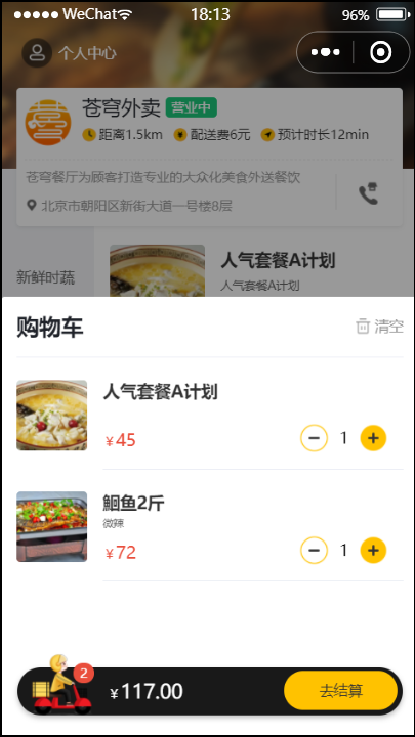 当用户添加完菜品和套餐后,可进入到购物车中,查看购物中的菜品和套餐。