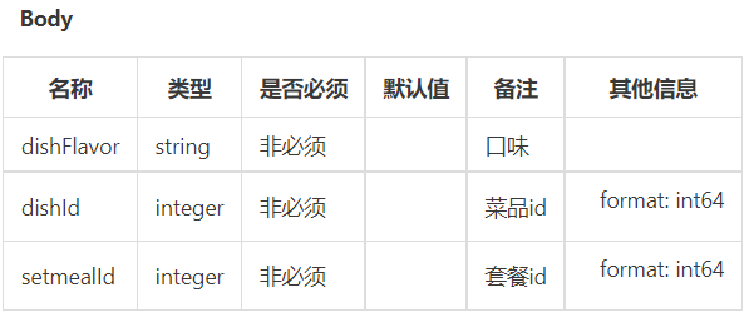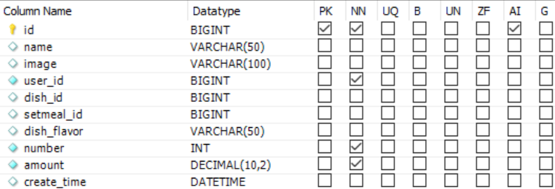 dish_id | bigint | 菜品id | 逻辑外键 |