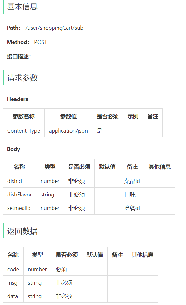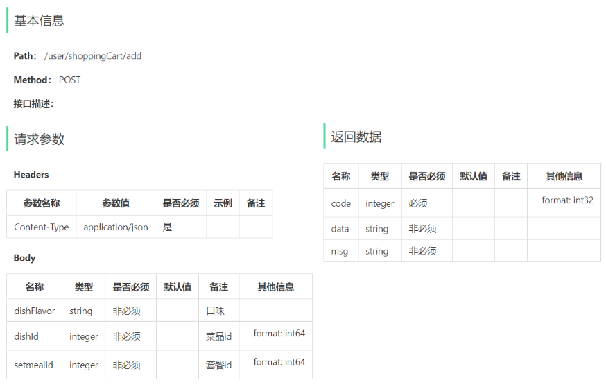 说明:添加购物车时,有可能添加菜品,也有可能添加套餐。故传入参数要么是菜品id,要么是套餐id。