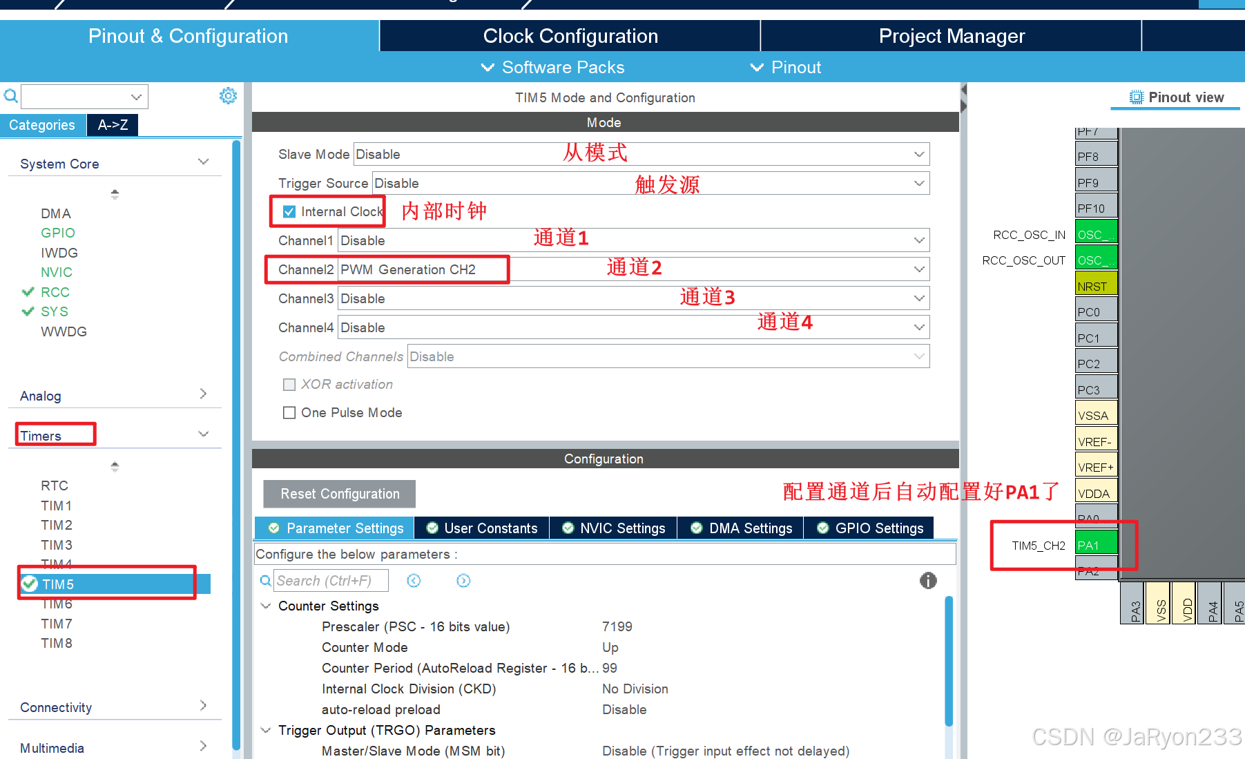 接着,自然应该是要配置PA1相关的内容,由于此时PA1是复用定时器功能,因此我们直接配置TIM5即可配置好PA1了,因此接着配置TIM5。