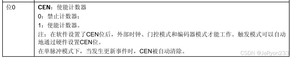 接着是TIM5的开启和关闭函数的实现。这就很简单了,只有一条语句,其中设置的寄存器位和前面基本定时器一模一样,不记得的可以自己查一下参考手册,如下图所示。