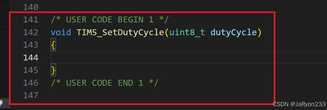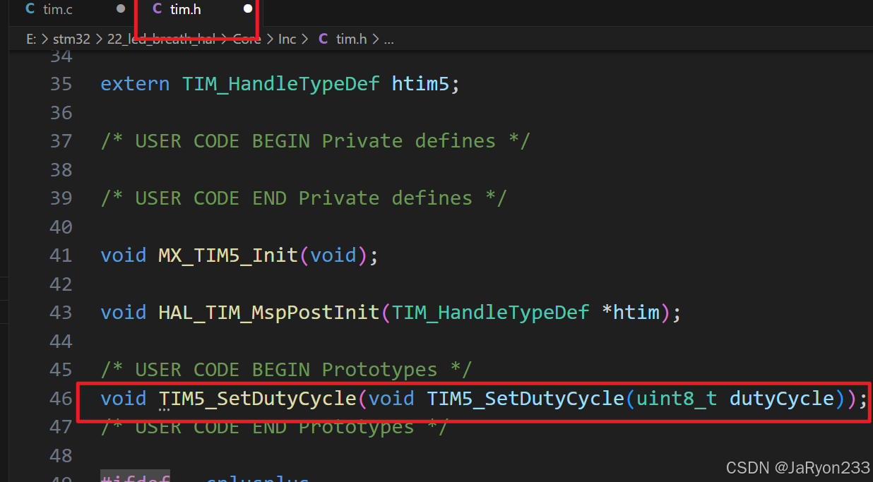 所以,我们直接在tim.c中定义一个设置占空比的函数,并在tim.h中进行声明,参考代码如下: