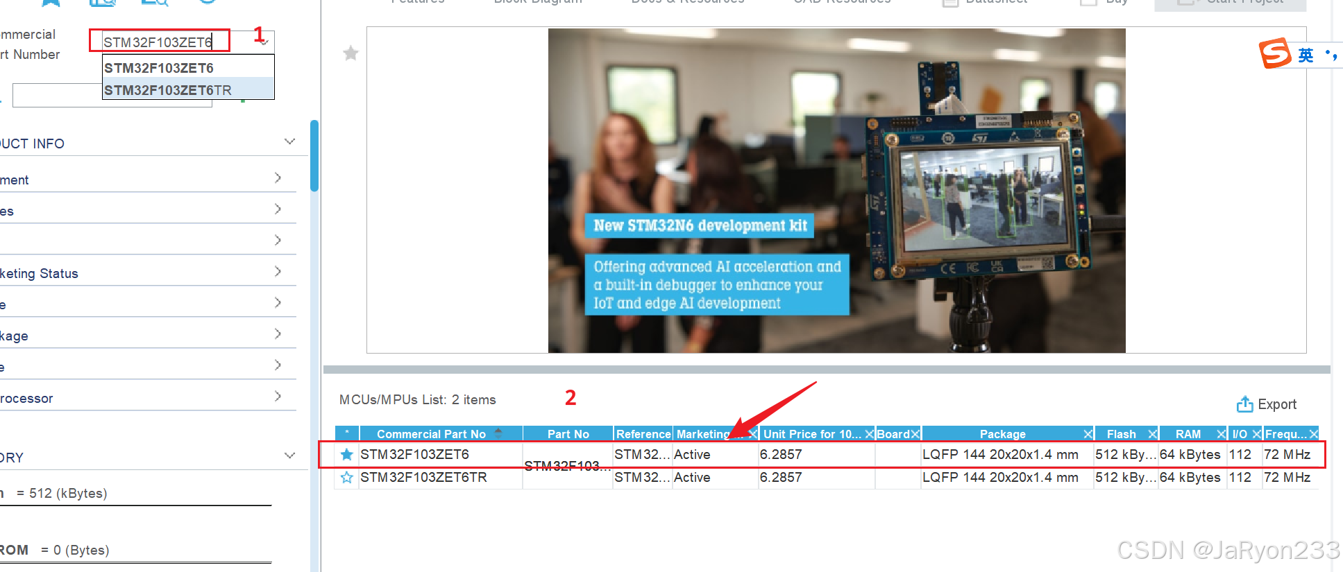 然后,搜索自己使用的芯片(我使用的是STM32F103ZET6),双击芯片创建工程。