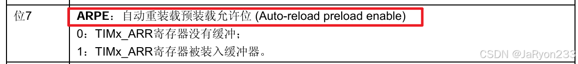 auto-reload preload,即对应控制寄存器的APRE位的预装载使能,当然,我们可以不用开启,所以选Disable即可。