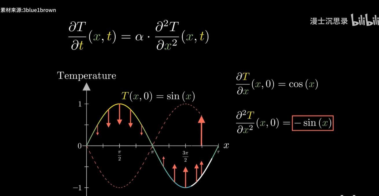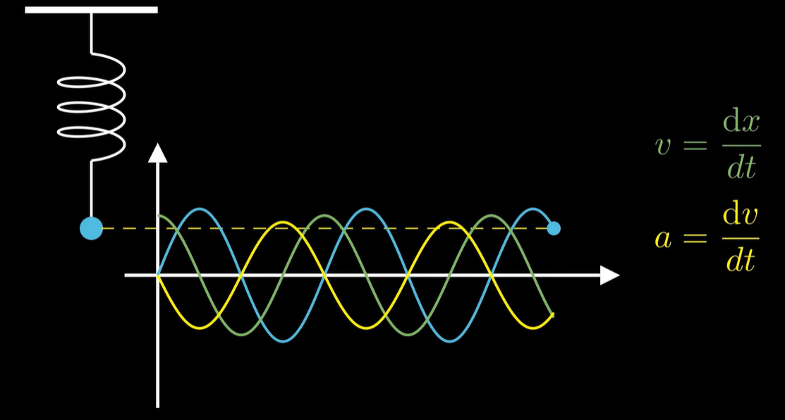 这就注定了简谐振动的函数形式一定是正弦。巧合的是,热的传播、交流电等等,都有这种二阶导与函数值差一个负倍数的关系。
