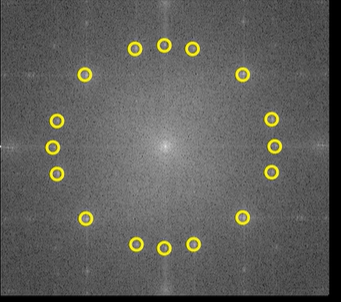 通过傅里叶变换,将图像转到频域之后,你会看到周期性的噪声会清晰地显示为屏幕上几个特定的亮点。