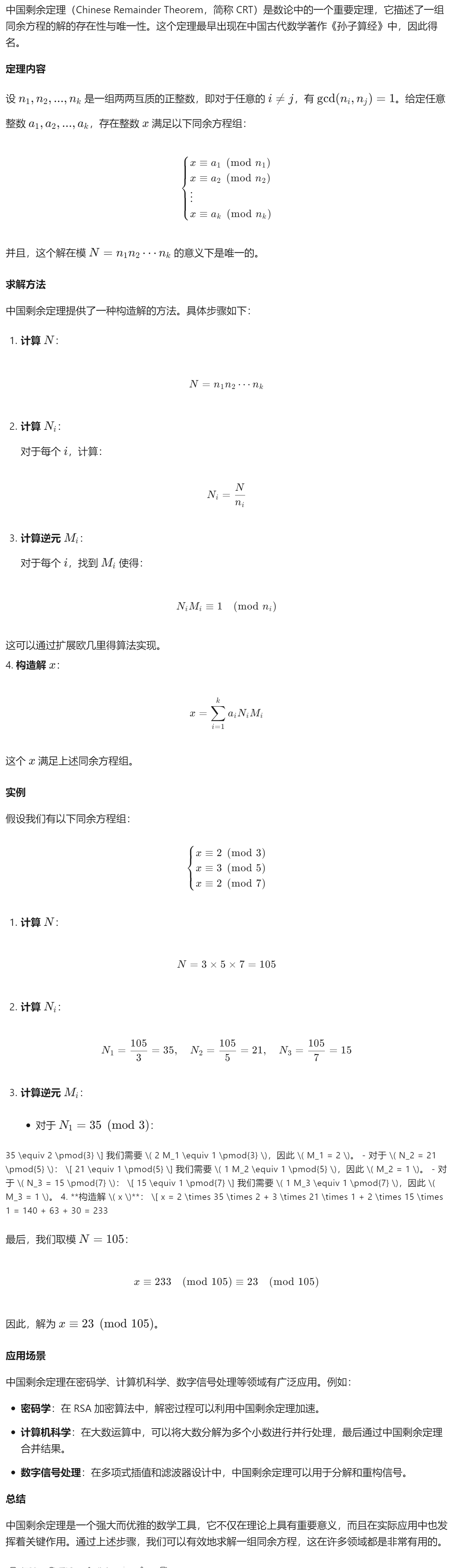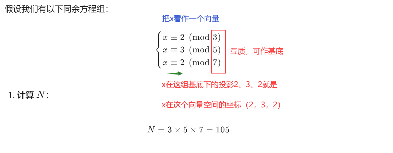 这个巧妙的解法背后正体现了在这个余数坐标下,对恰当的基底线性组合,还原原来向量的过程。