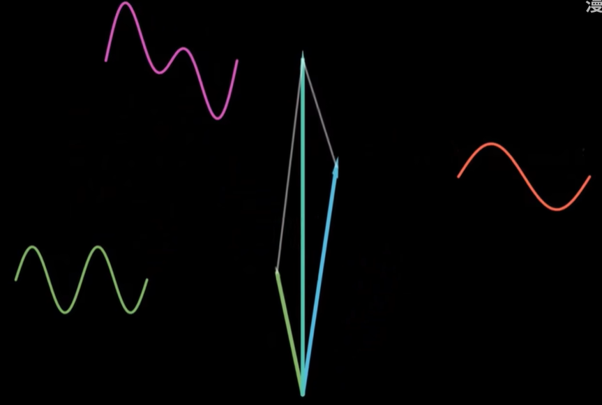 其实在真正终极的傅里叶变换里,我们用的基底,是在这些圆周上以不同角速度旋转的向量,而不是正弦函数。