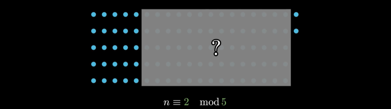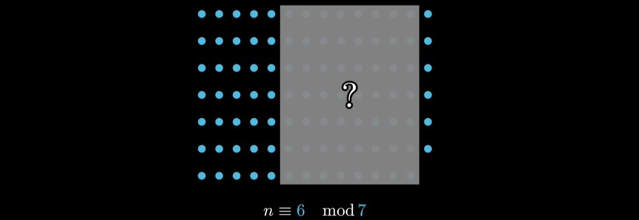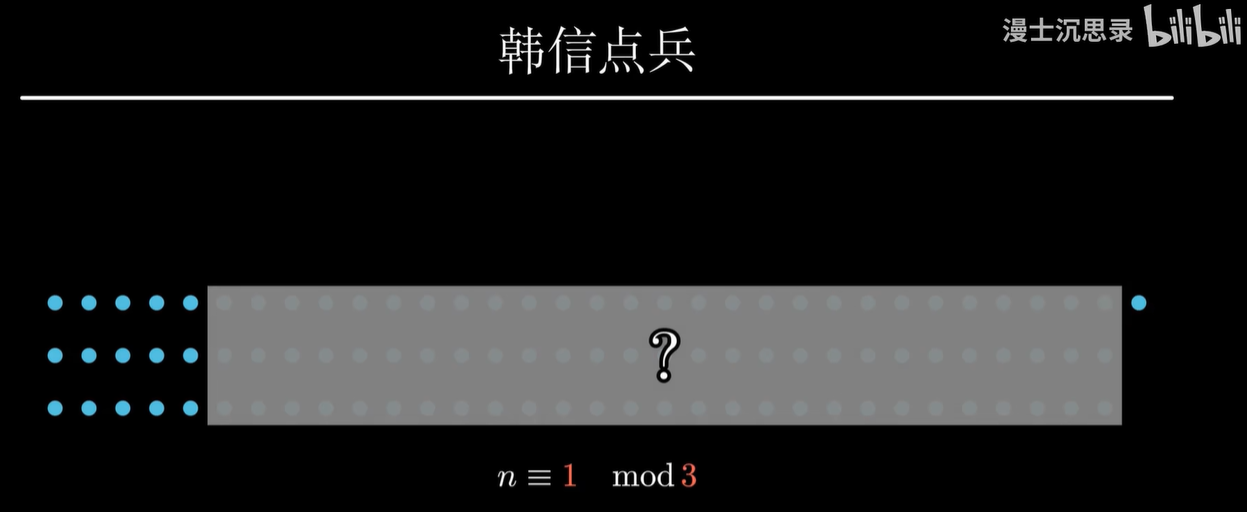 再举个例子,我们小学奥数都听过韩信点兵的故事,说韩信点兵啊,不需要一个一个数,只需要知道三个三个数剩一个人,五个五个数剩两个,七个七个数剩六个,韩信就立刻知道,整个队伍一共有97个人,这是怎么回事呢?