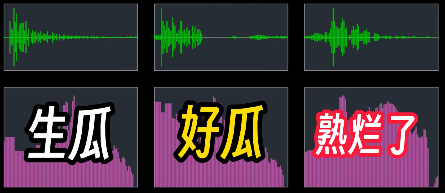 那这些瓜的声音到底有什么区别呢,初中物理有一个简单的回答叫音色,但这就引出另一个著名的难题,到底什么是音色呢?其实啊,答案要一直等到大学才会揭晓。那就是傅里叶变换。