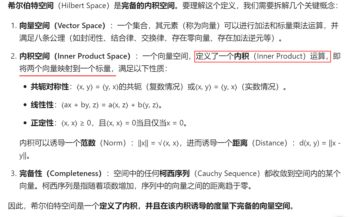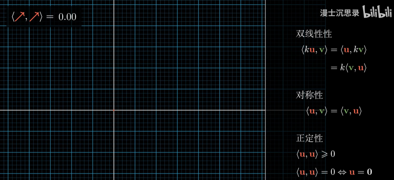 - 双线性性:一堆向量加在一起和另一个内积,等于每个分别内积之后再加到一起,就像乘法的分配律。