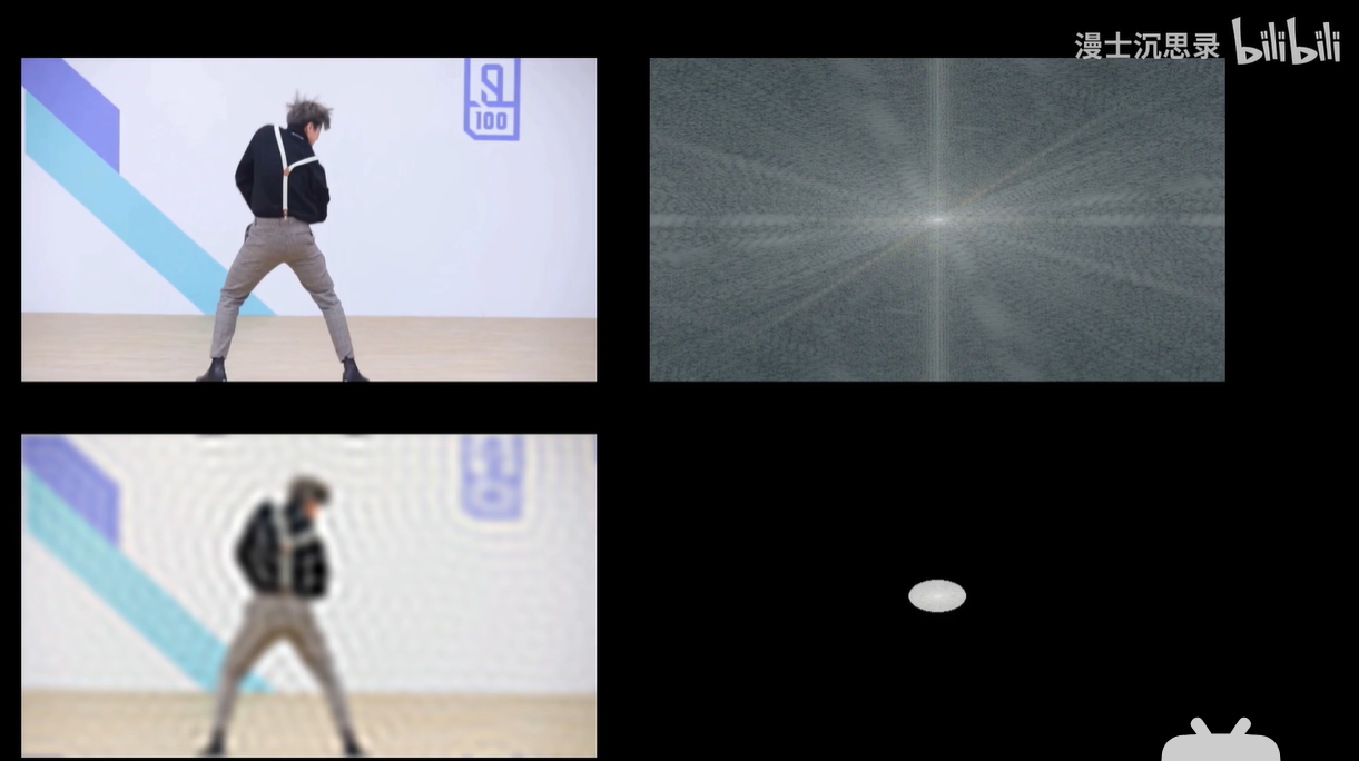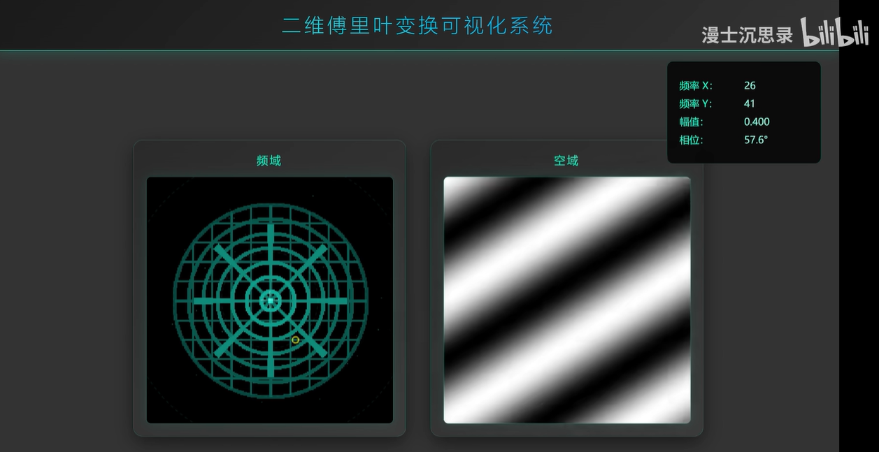 这是因为二维的图片信号也可以傅里叶变换,此时频域的每一个点对应的不再是正弦函数,而是二维的正弦波。