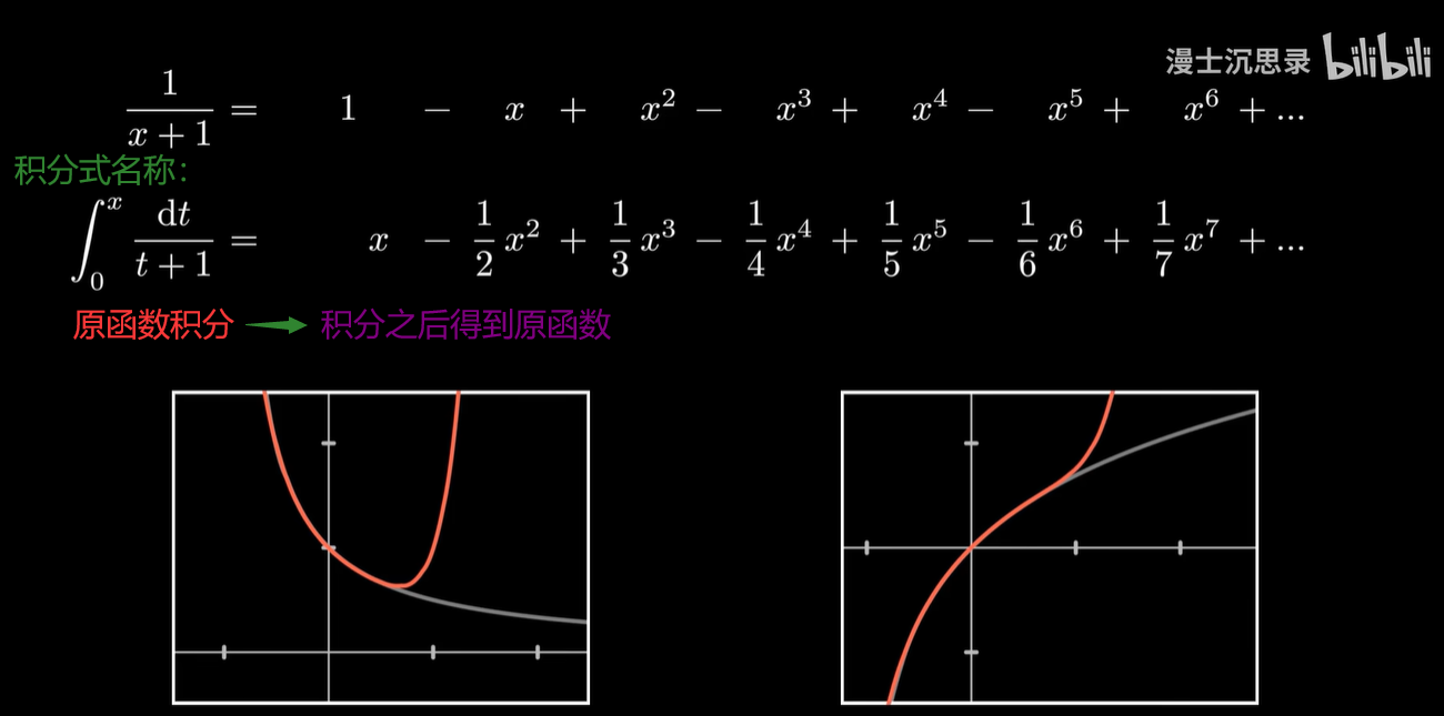 积分的原函数是 ln(1+x) ,而反过来,ln(1+x) 的导函数则是