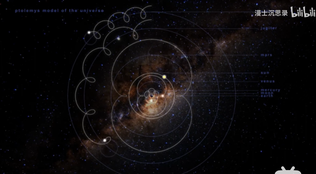 我第一次学到这里的时候,突然意识到曾经我们学过人类历史上由托勒密提出的地心说,天文学家用本轮和均轮来解释复杂的行星逆行,诶,这本质上不就是用傅里叶变换的圆上圆来近似那些复杂魔幻的行星运动吗,也就是说,人类其实应用傅里叶变换的历史有千年之久。