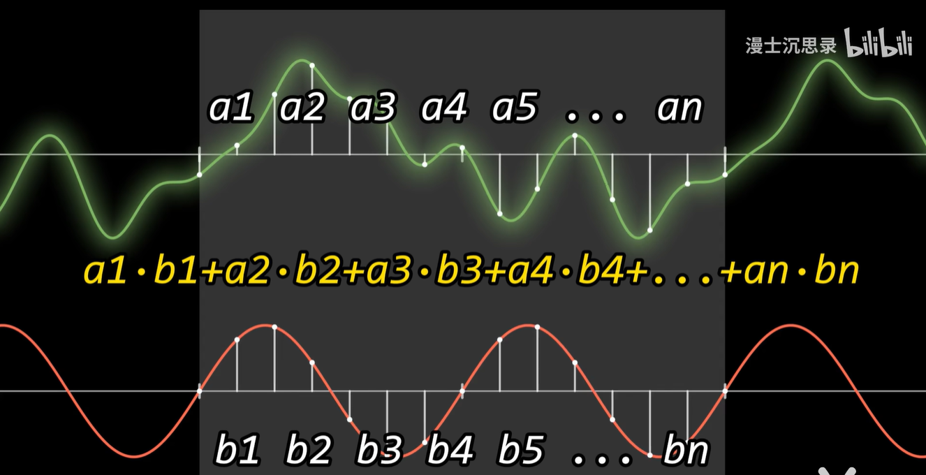 - 就像平面直角坐标系一样,只需要挑任何一个余弦函数的基底出来,内积一下,你就立刻知道这个基底应该乘以什么样的系数了。