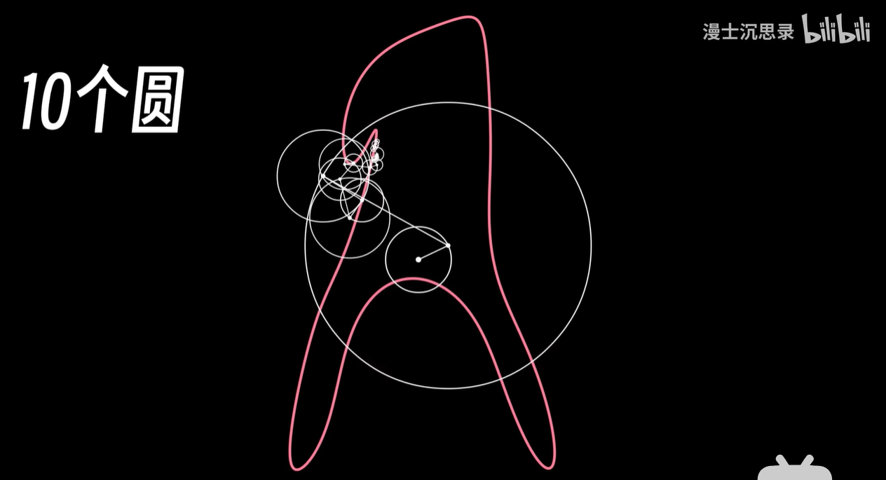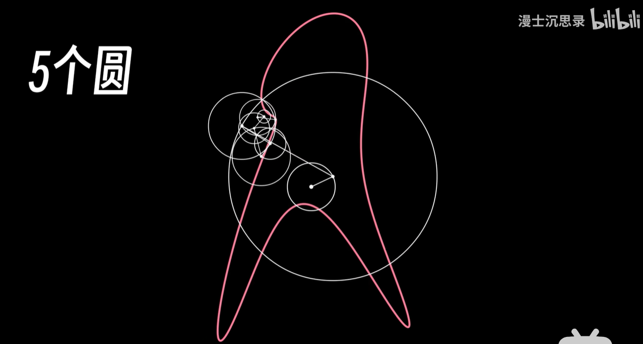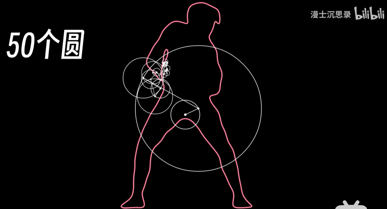 很多人可能都刷过这样的圆上加圆的视频,好几个复杂嵌套的圆,每个有各自的半径和旋转的速度,然后我们追踪这一连串向量最末端那个点的轨迹,神奇的事情发生了,这些看起来机械的转动组合起来,却突然像一个画笔有了生命一样,可以绘制出各种各样的图像