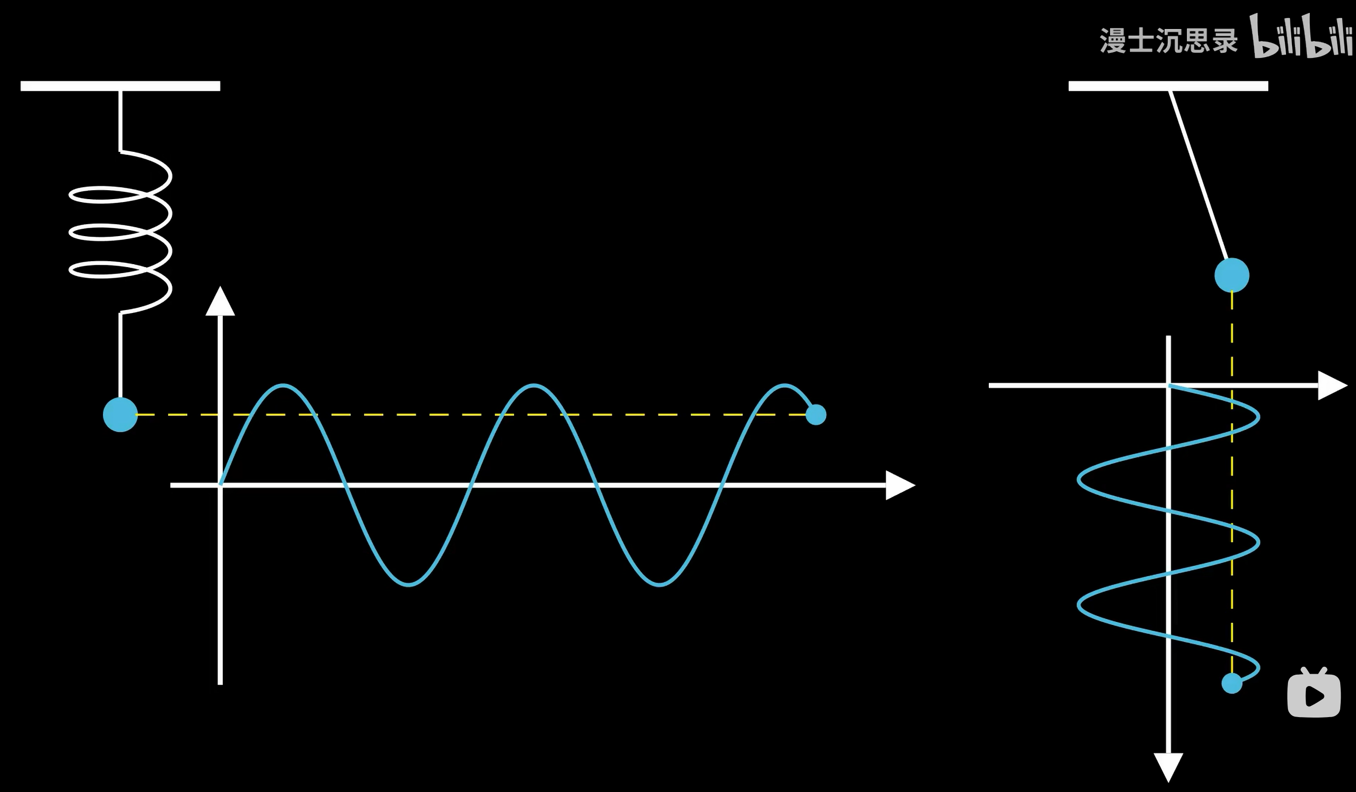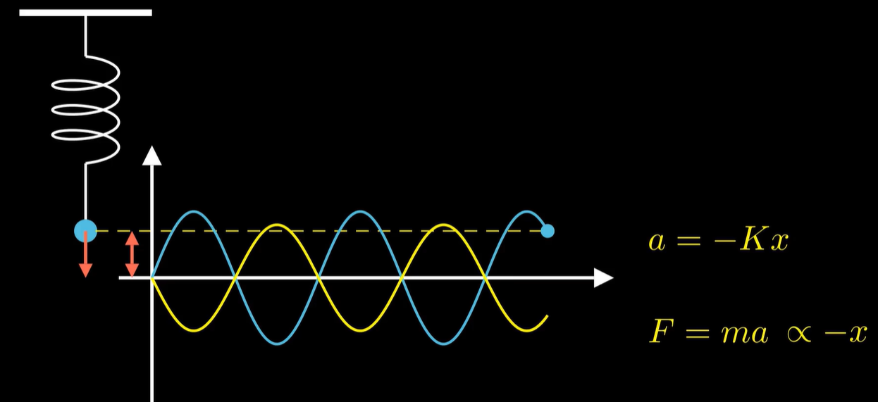 而这正是振动力过程底层的机理:离开平衡位置越远,回复力越大,加速度正比于偏移量。