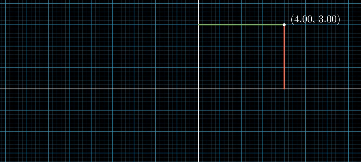 - 任何一个点往 X 轴和 Y 轴做垂线,在数轴上交点就是横纵坐标;