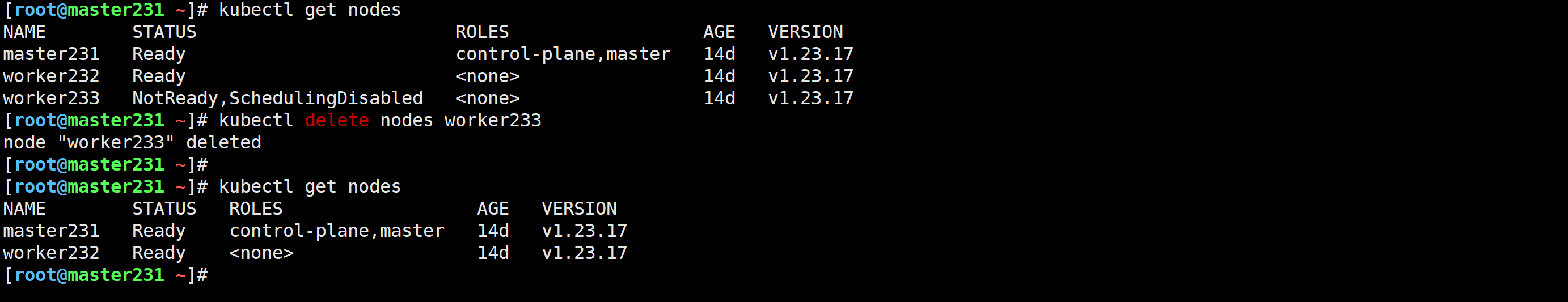 [root@master231 scheduler]# kubectl delete nodes worker233
