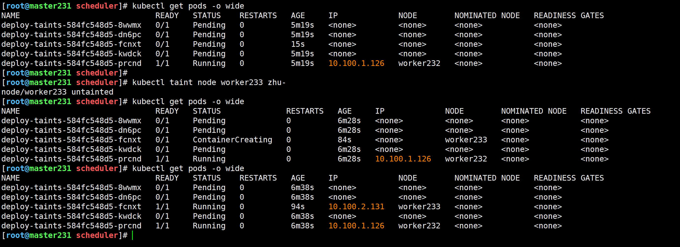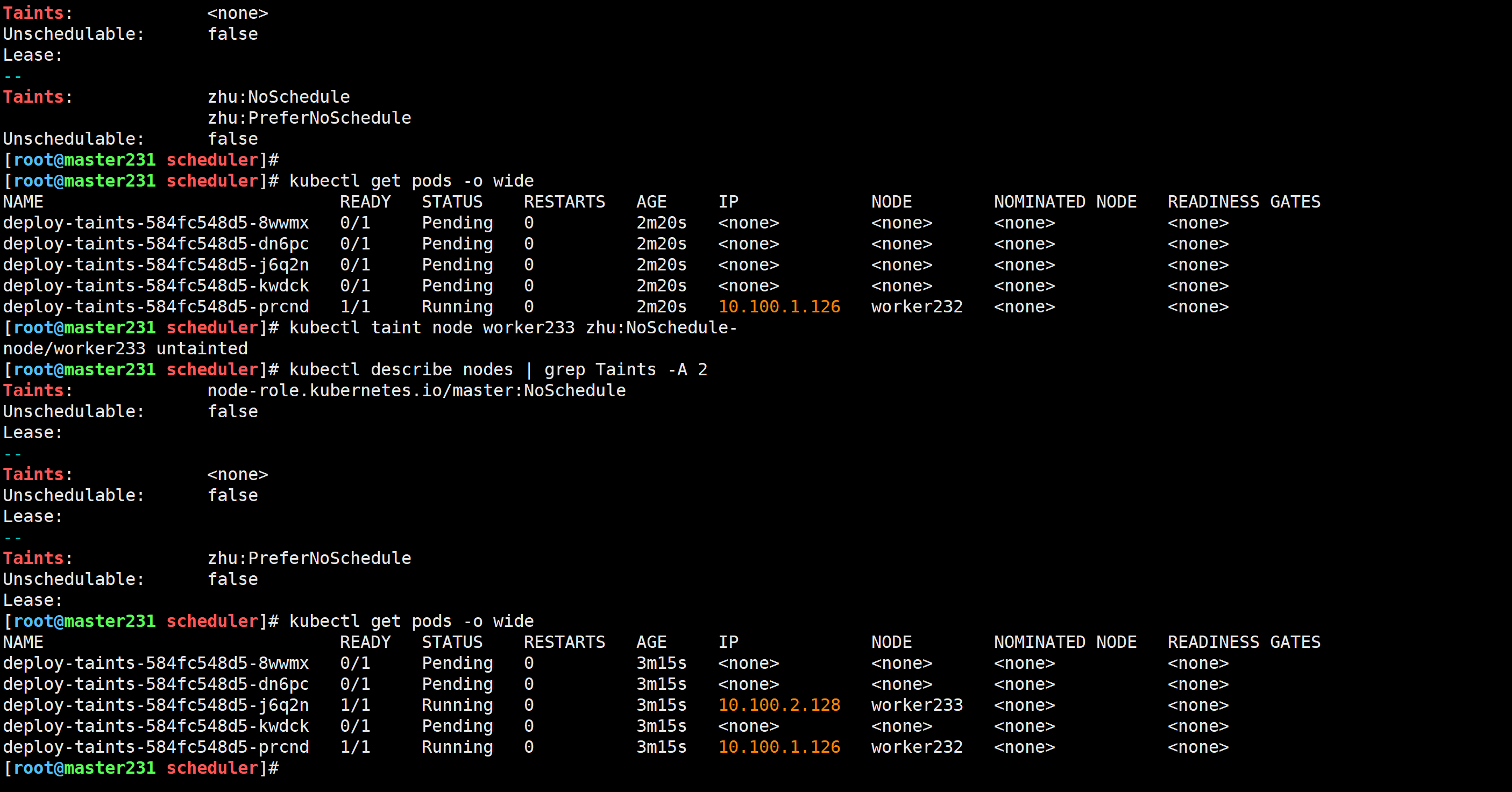 [root@master231 scheduler]# kubectl taint node worker233 zhu:NoSchedule-