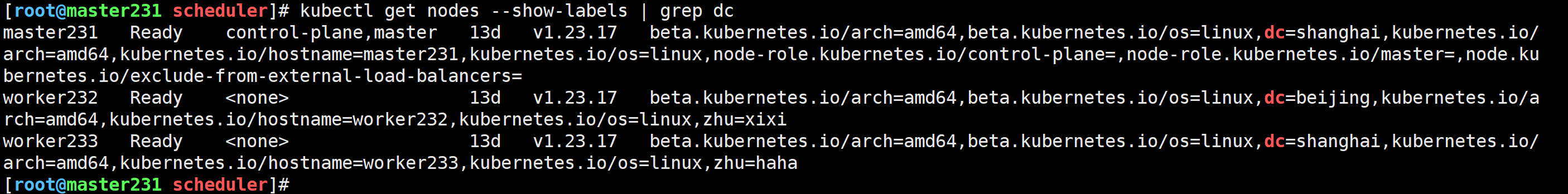 [root@master231 scheduler]# kubectl label nodes worker233 zhu=haha