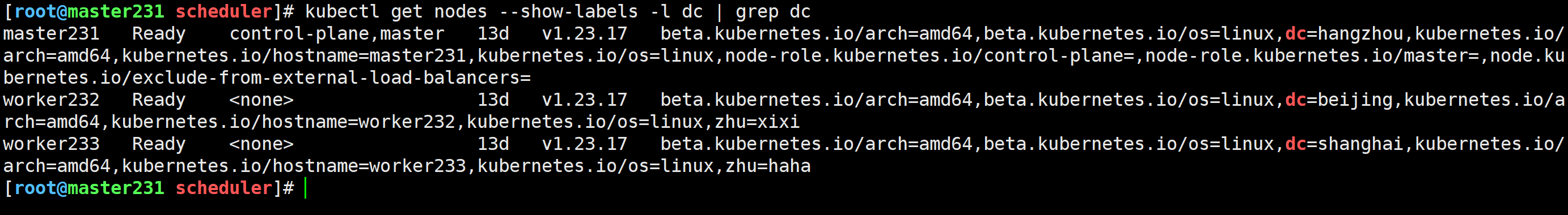 [root@master231 scheduler]# kubectl get nodes --show-labels -l zhu