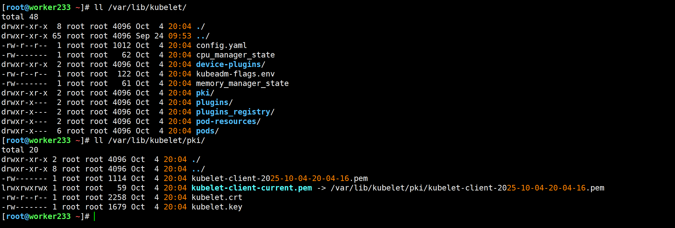 [root@worker233 ~]# ll /var/lib/kubelet/pki/