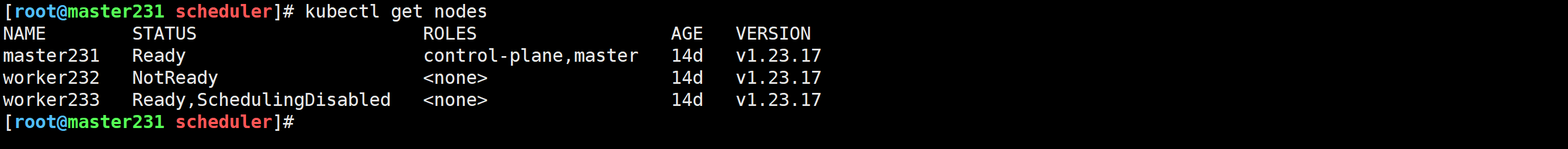 [root@master231 scheduler]# kubectl drain worker233 --ignore-daemonsets --delete-emptydir-data