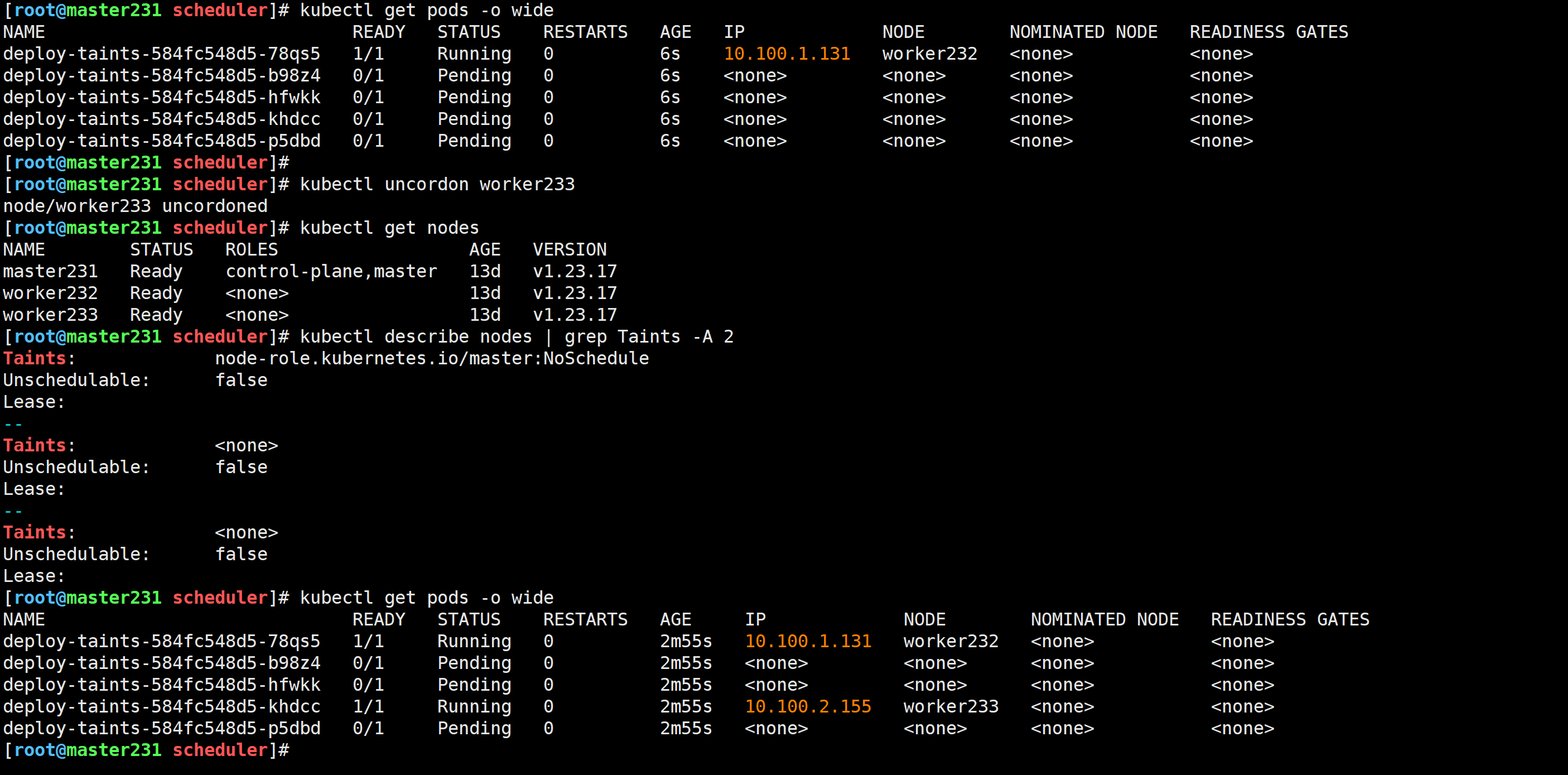 [root@master231 scheduler]# kubectl uncordon worker232 worker233