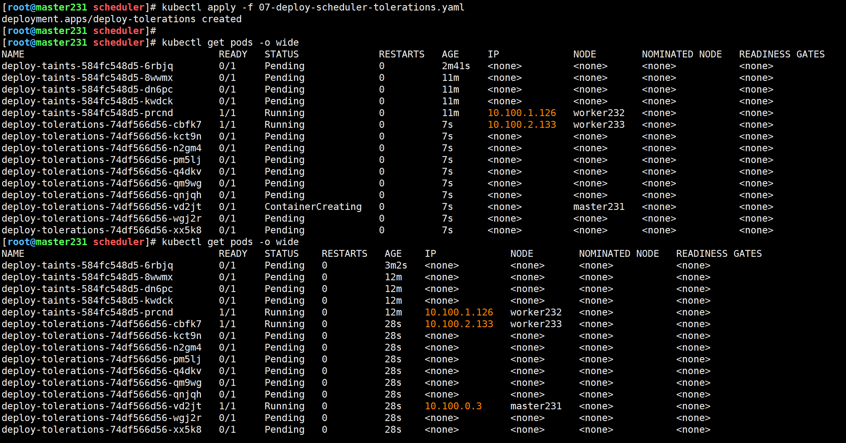 [root@master231 scheduler]# kubectl apply -f 06-deploy-scheduler-Taints.yaml