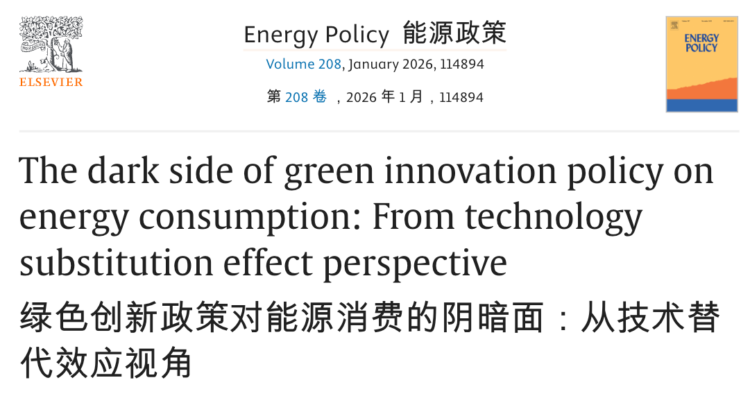 Xu T, Ding C J, Ahmed A D. The dark side of green innovation policy on energy consumption: From technology substitution effect perspective[J]. Energy Policy, 2026, 208: 114894.