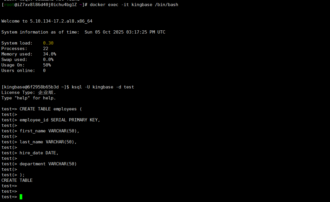 本次测试基于 Alibaba Cloud linux 3 系统,通过 Docker 进行 KingbaseES 的部署。选择 Alibaba linux 3 是因为其稳定性和对企业级应用的良好支持,而 Docker 技术则能提供高效、便捷的容器化部署方式,确保环境的一致性和可移植性,大大简化了数据库的安装和配置过程。