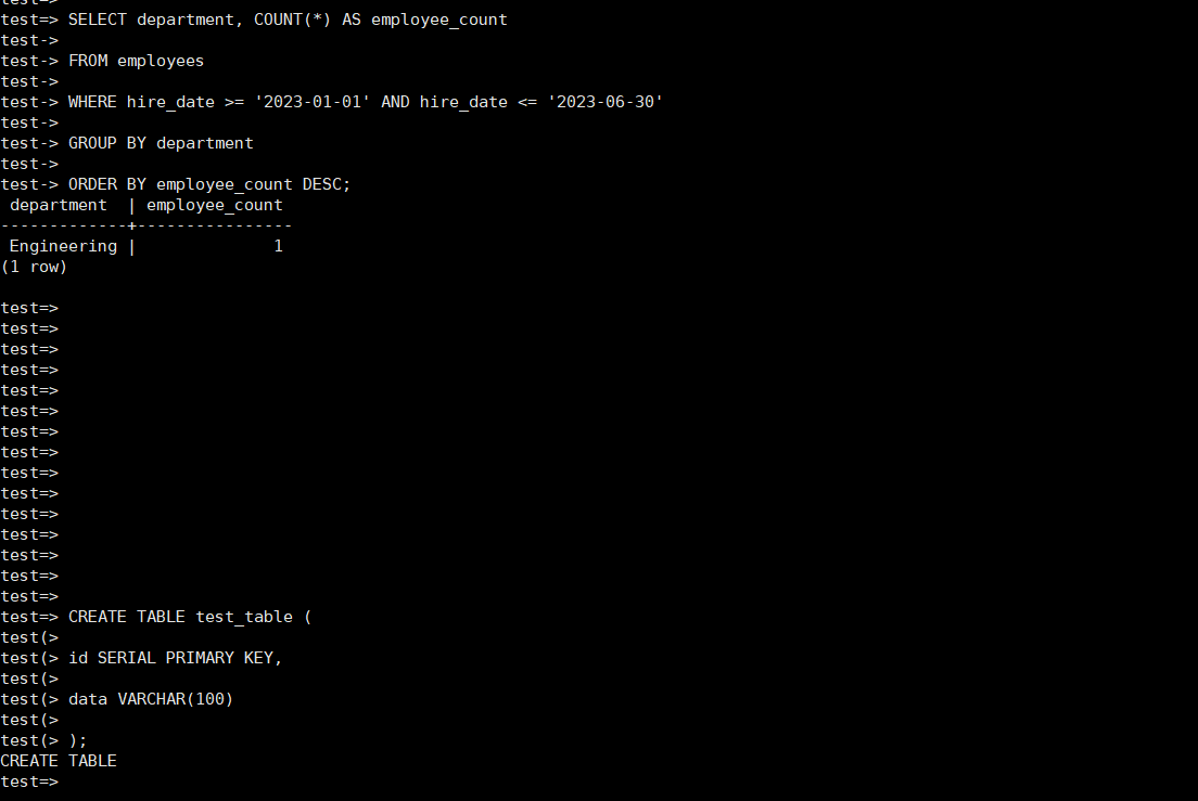 CREATE TABLE test_table (id SERIAL PRIMARY KEY,data VARCHAR(100));