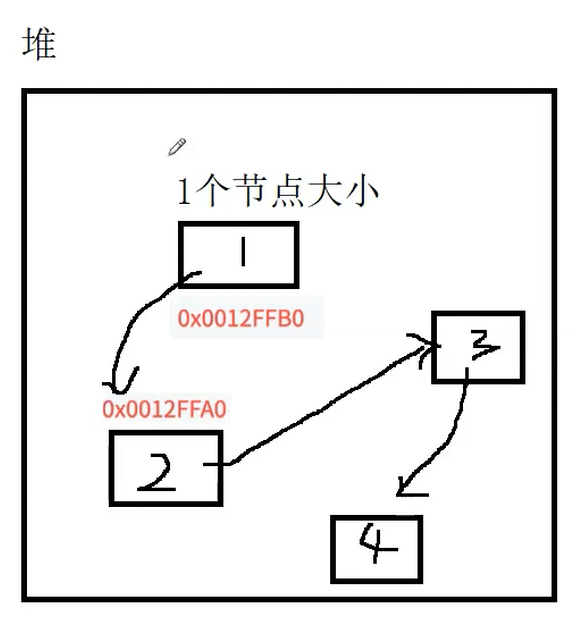 注:链表每个结点在堆区是独立存在的,不是连续的!