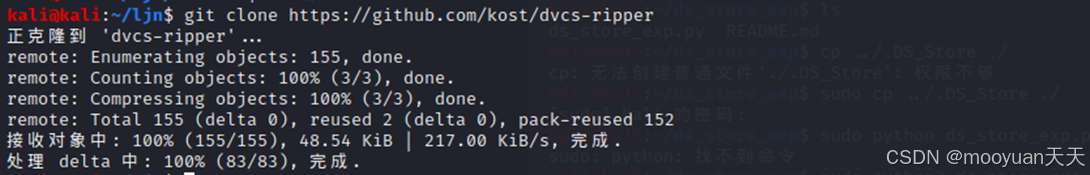 运行结果如下所示,输出显示使用 dvcs-ripper