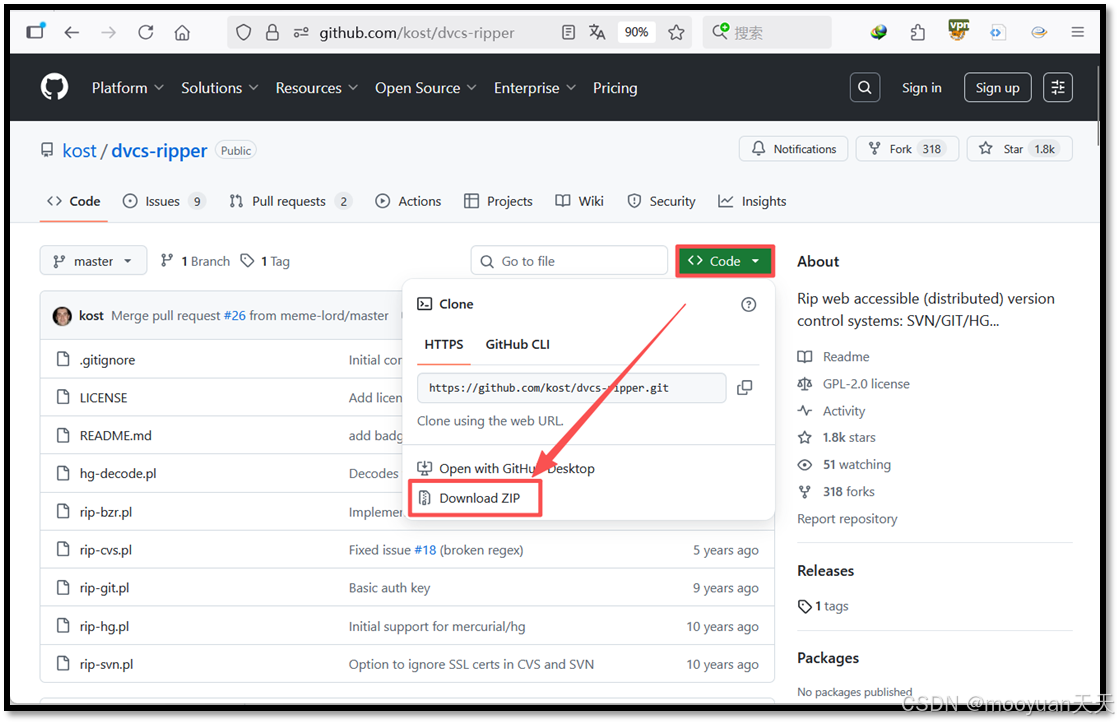 支持的系统 | 支持多种分布式版本控制系统(DVCS)和集中式系统: • Git ( rip-git.pl )• Subversion (SVN) ( rip-svn.pl )• Mercurial (Hg) ( rip-hg.pl )• Bazaar (Bzr) ( rip-bzr.pl ) |