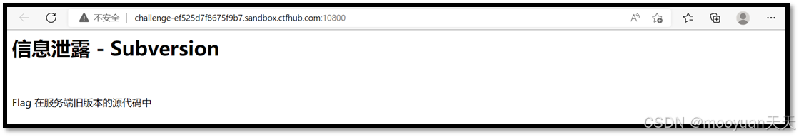 打开靶场URL,页面提示"信息泄露-subversion,flag在服务端旧版本的代码中”,具体如下所示。