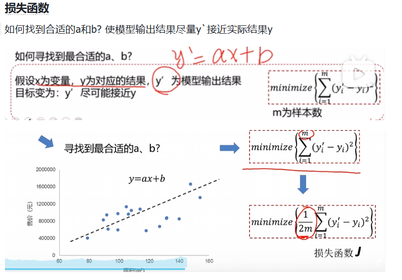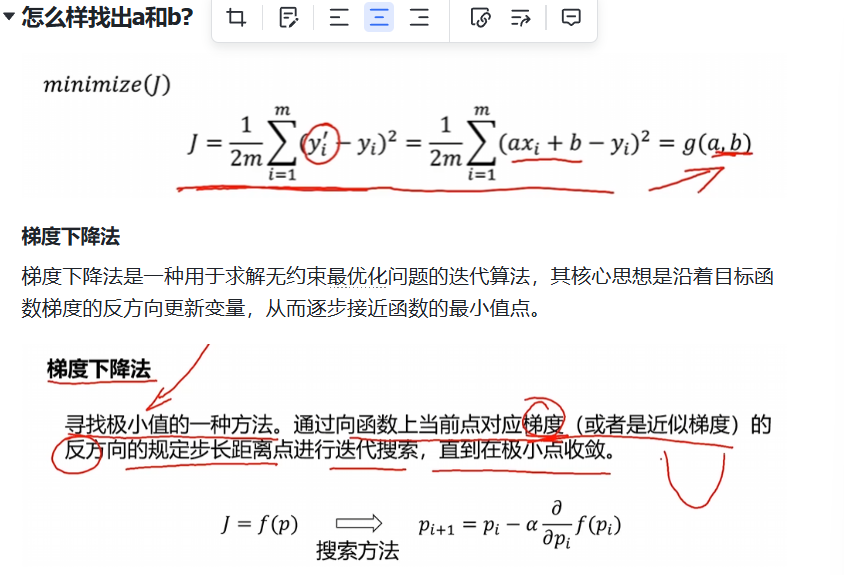 如何找到合适的a和b? 使模型输出结果尽量y`接近实际结果y