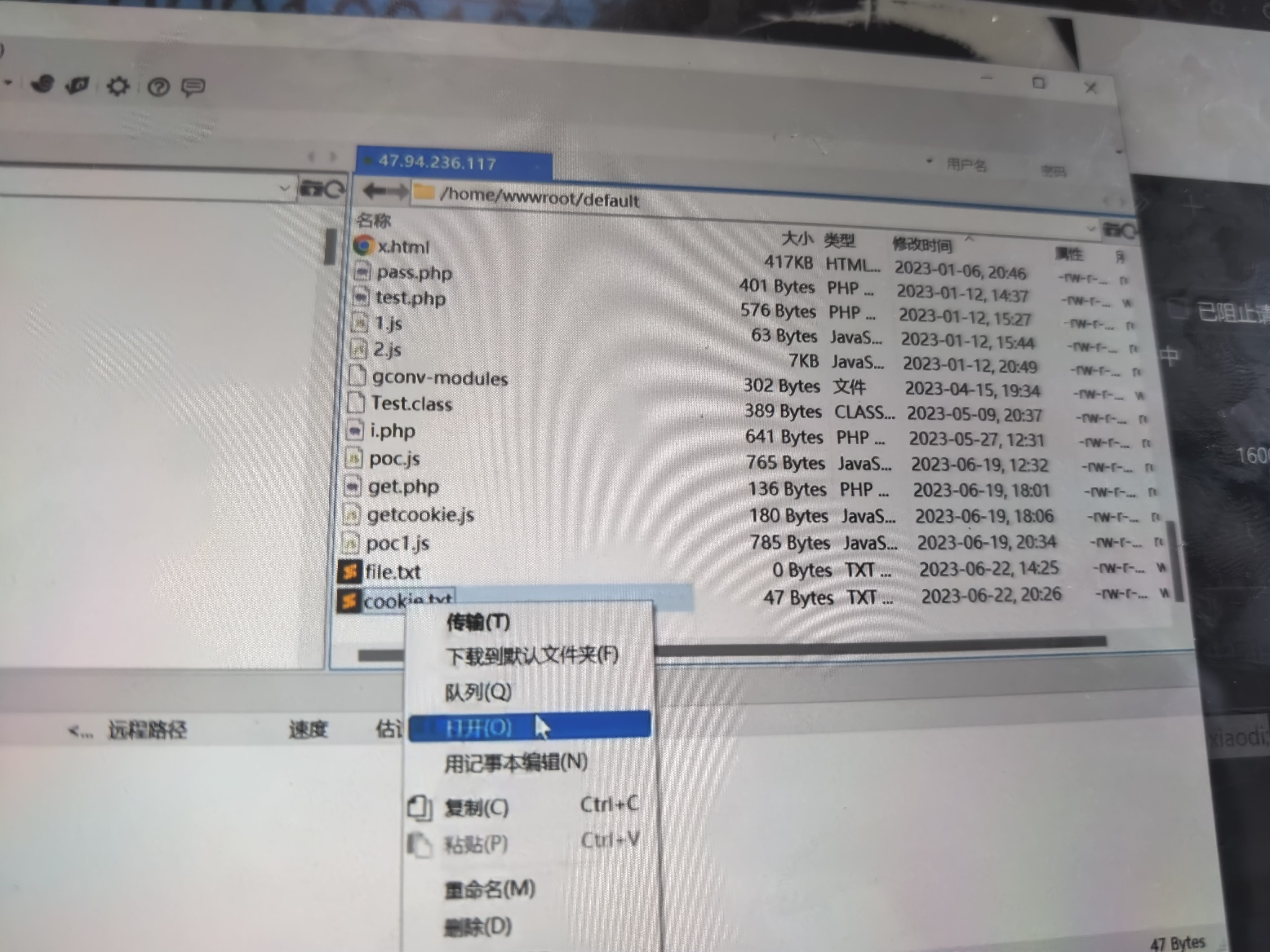 我的网站信息是192.168.1.3,而我接收方就是那个,然后就会产生一个cookie.txt