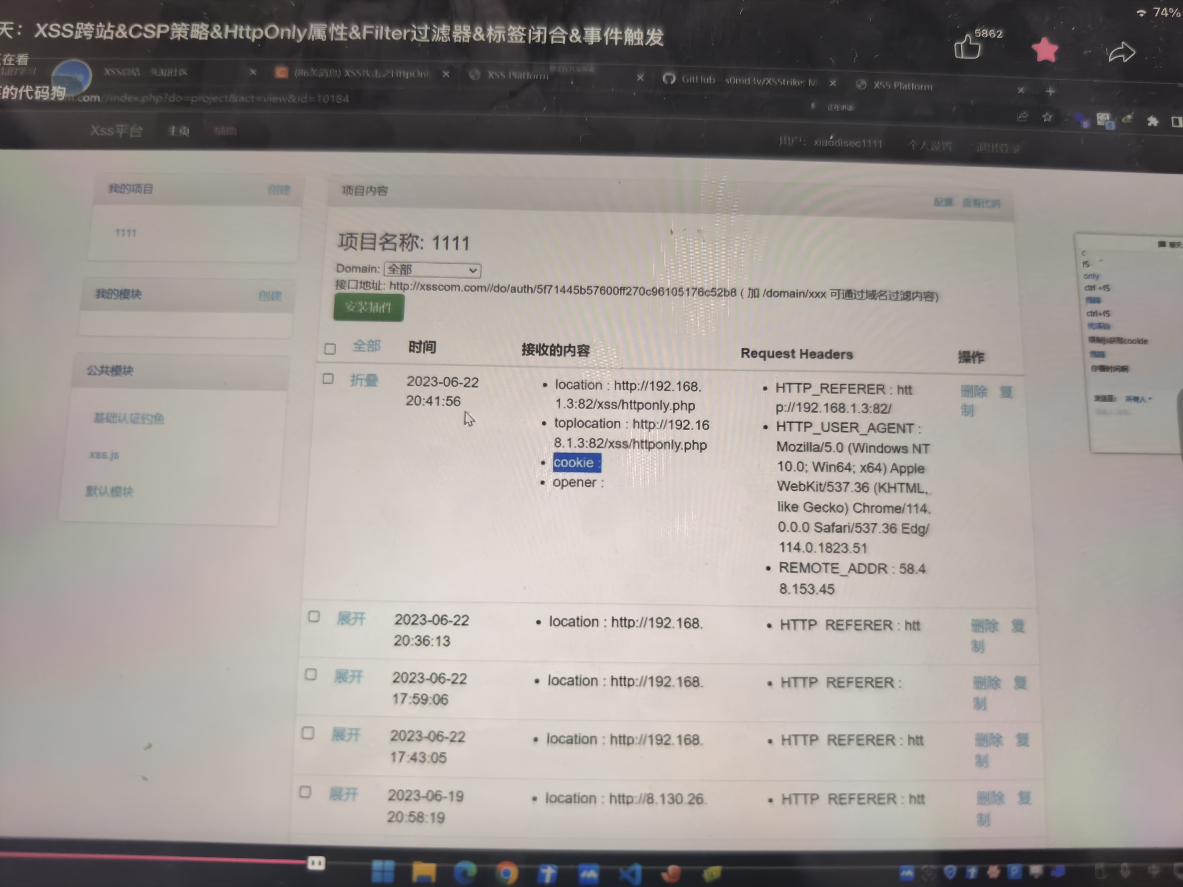 启用之后,还是连接那个获取cookie的地址,但是最后啥也没看到。