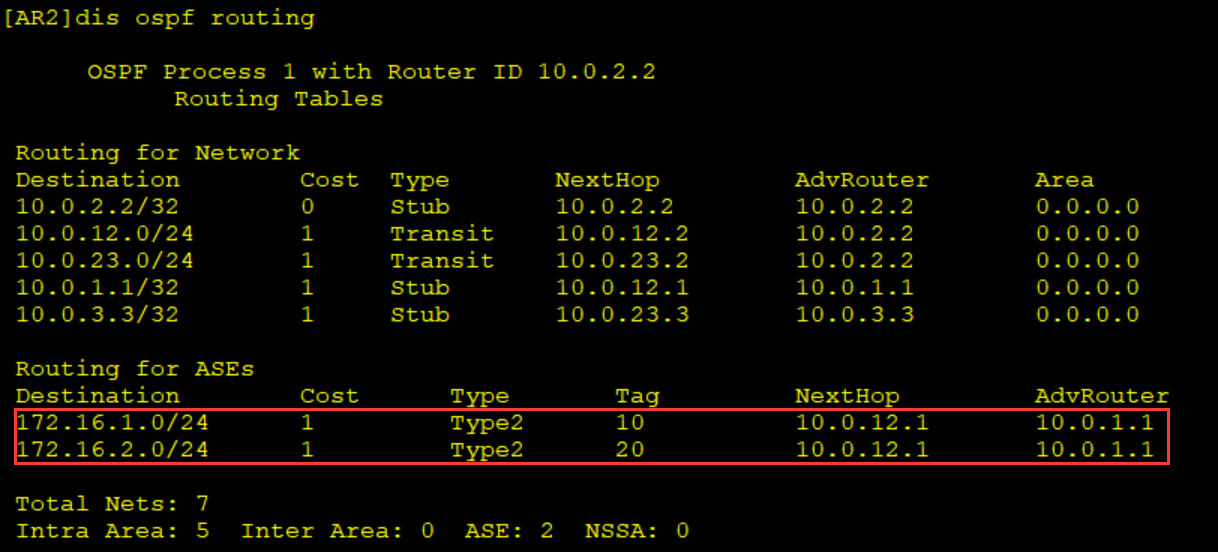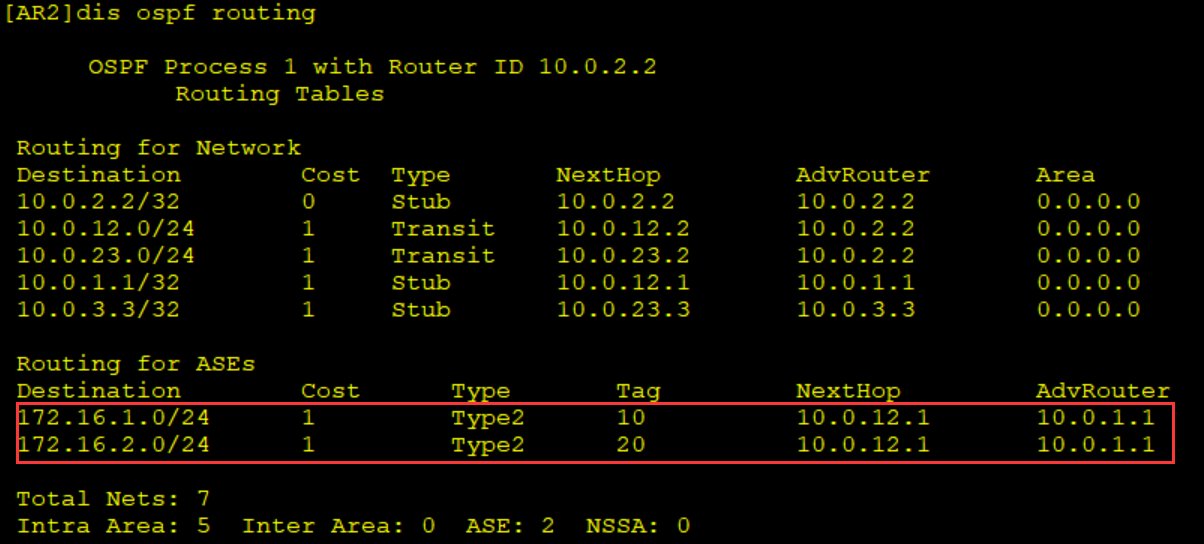 [AR2-ospf-1-area-0.0.0.0]network 10.0.2.2 0.0.0.0