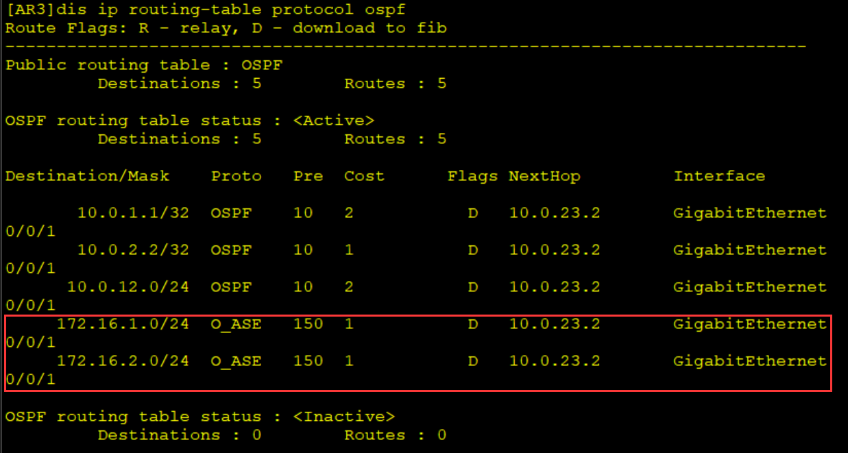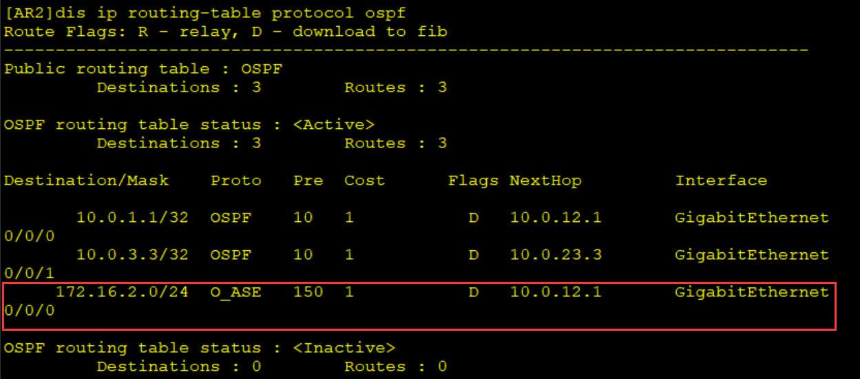 [AR2-ospf-1-area-0.0.0.0]network 10.0.23.2 0.0.0.0