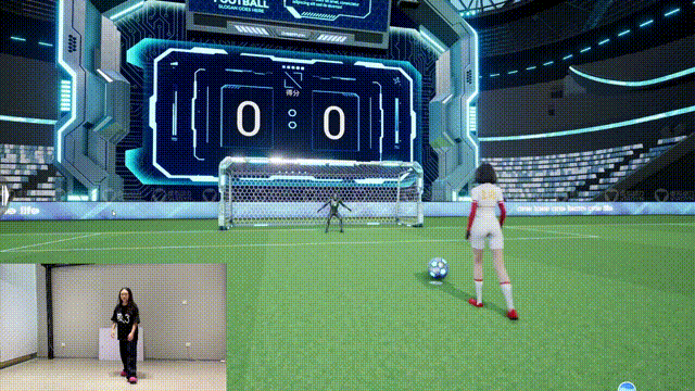 无穿戴动捕技术的核心价值,在于将用户从隔着屏幕操作的被动状态,转变为“身体即控制器”的主动参与者。以足球主题乐园场景为例,当玩家步入交互区后,系统会自动识别人体并绑定虚拟角色进行动作映射,同时支持对角色形象、服饰的自由切换。在交互过程中,玩家可根据自身需求与水平选择关卡难度,同时,可结合空间音频系统,同步渲染出观众席的欢呼声与球场环境音,通过视觉觉、听觉的多维度反馈,构建出虚实难辨的全感官沉浸场景,让玩家感受到竞技快感。